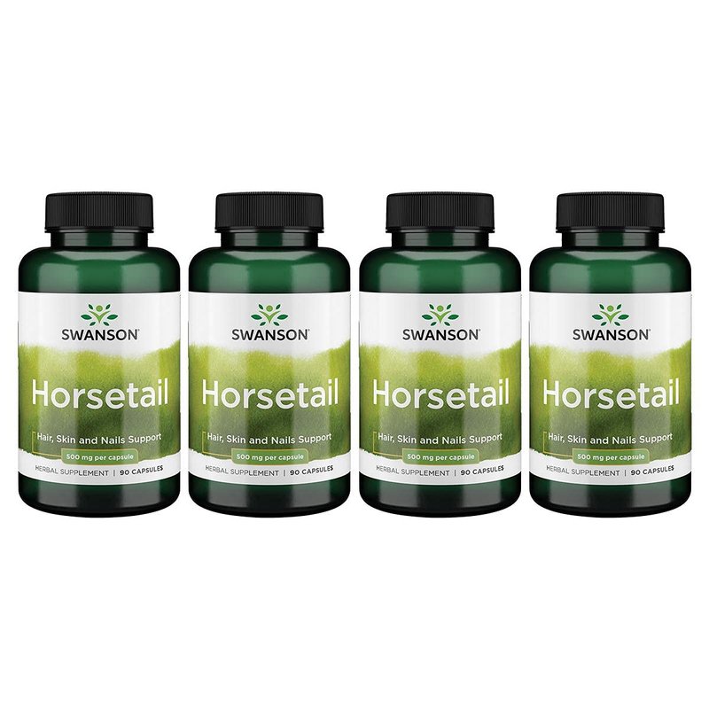 Swanson Horsetail - Herbal Supplement Supporting Healthy Hair, Skin & Nails - Natural Ingredients for Bone Health & Urinary Tract Support - (90 Capsules, 500mg Each) 4 Pack