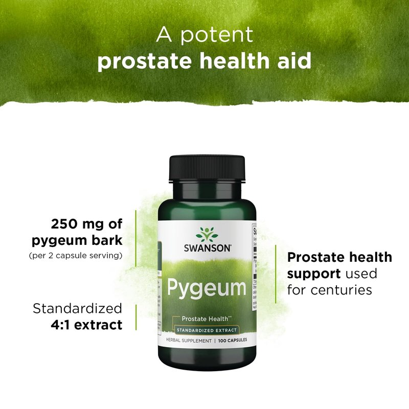 - MENS SUPPORT SUPPLEMENT: Your prostate health is too important to take for granted. Delivering 125mg per capsule, Swanson's pygeum supplement is packed with nutrients supporting prostate health, bladder health, and urinary tract health for men.