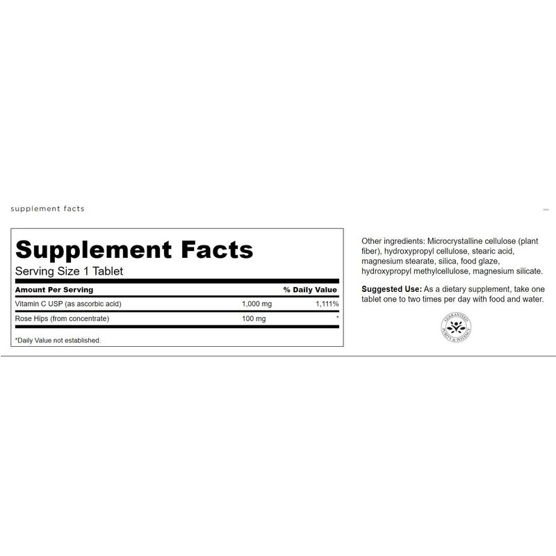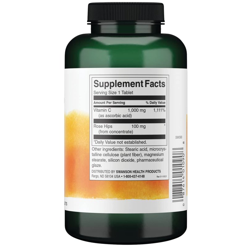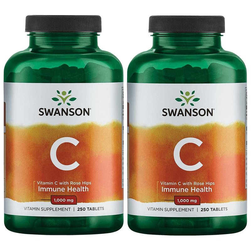 Swanson Vitamin C with Rose Hips Immune System Support Skin Cardiovascular Health Antioxidant Supplement 1000 mg 250 Tablets (Tabs) (2 Pack)