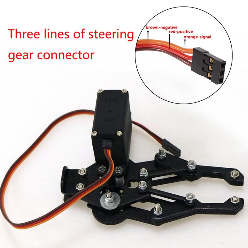 - [Learning]: This clamp can be used for the function model realization. Maybe the precision is not high, but you can learn how to control the robot claw with servo motor by the controller, like Arduino, Raspberry pie.