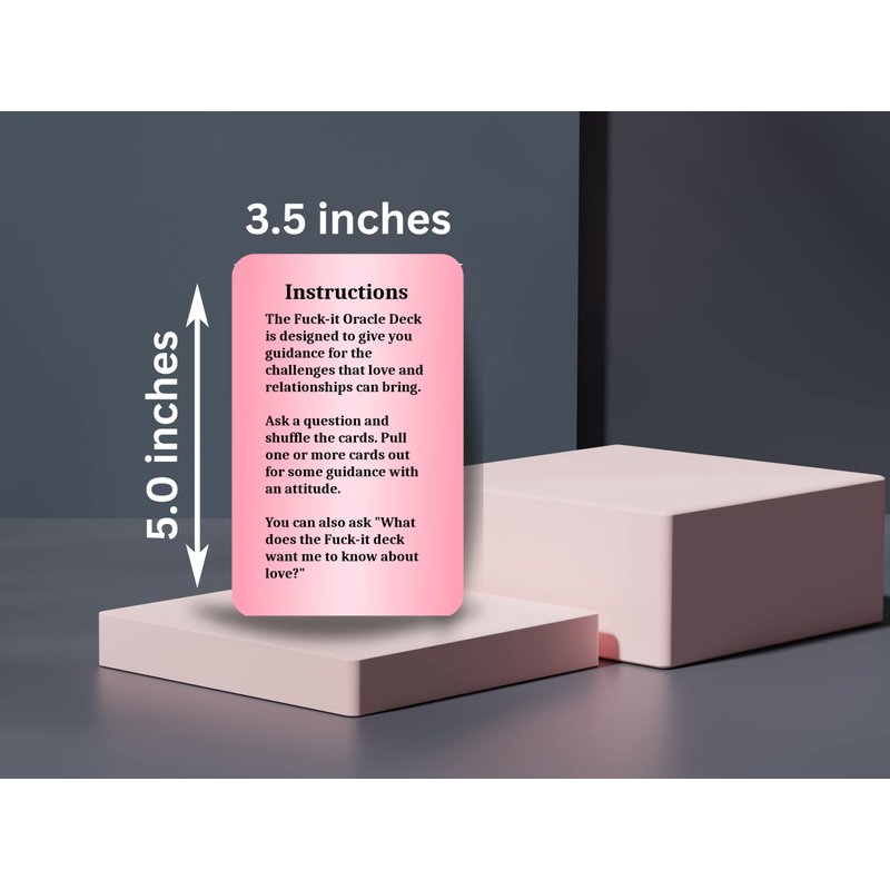 - HOW TO USE: Ask a question and pull 1 or 2 cards. You can pull a daily Fuck-it Romance Edition Oracle Card for relationships, soulmates, twin flame, spiritual,...all types of guidance! These are great ice-breakers for parties and social gatherings. Perfect for beginners or to use with intuition or Tarot Cards. These cards will give you unique and humorous guidance to everyday challenges that life can bring. Perfect for a gag gift as well!