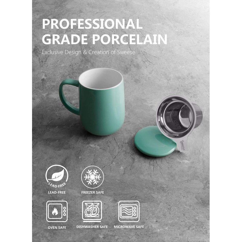 Sweese 20 OZ Porcelain Tea Mug with Infuser and Lid, Loose Leaf Tea Cup, Gifts for Tea Lover - Mint Green