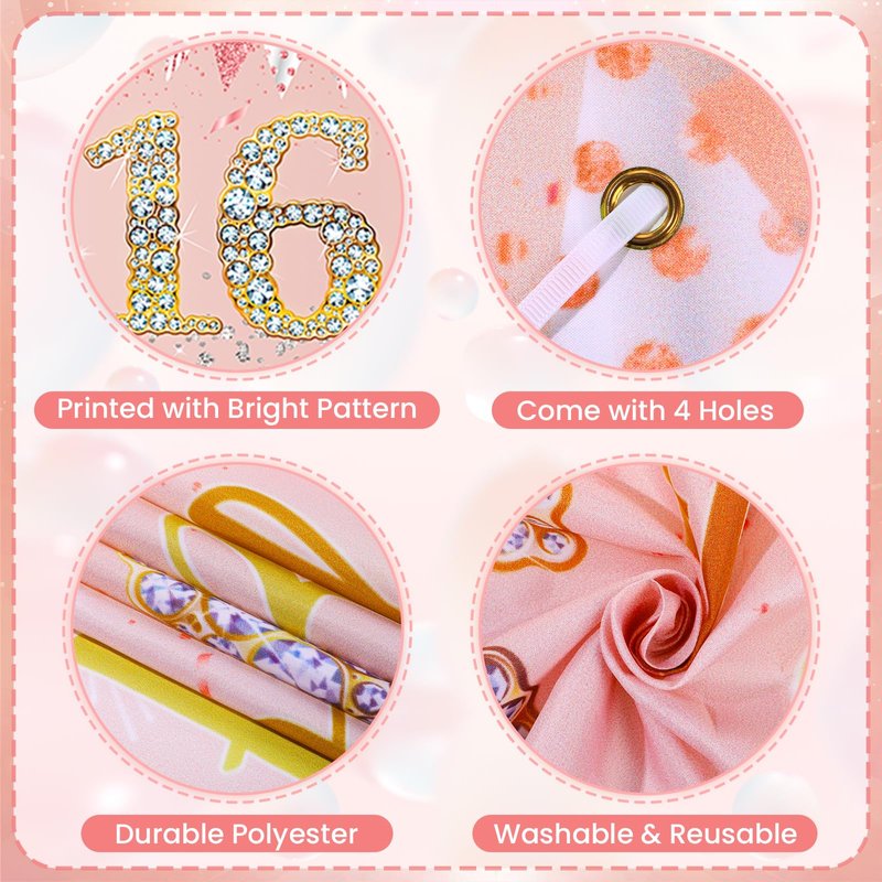 - 🍭Wide Application: You can use our rose gold 16th birthday set in many places. You can hang them on the fences, and hang in front of gate, and decorate your house outdoor. And the banner can use as a birthday photography background, you can take photos with your family.And spend your beautiful 16th birthday with your family.