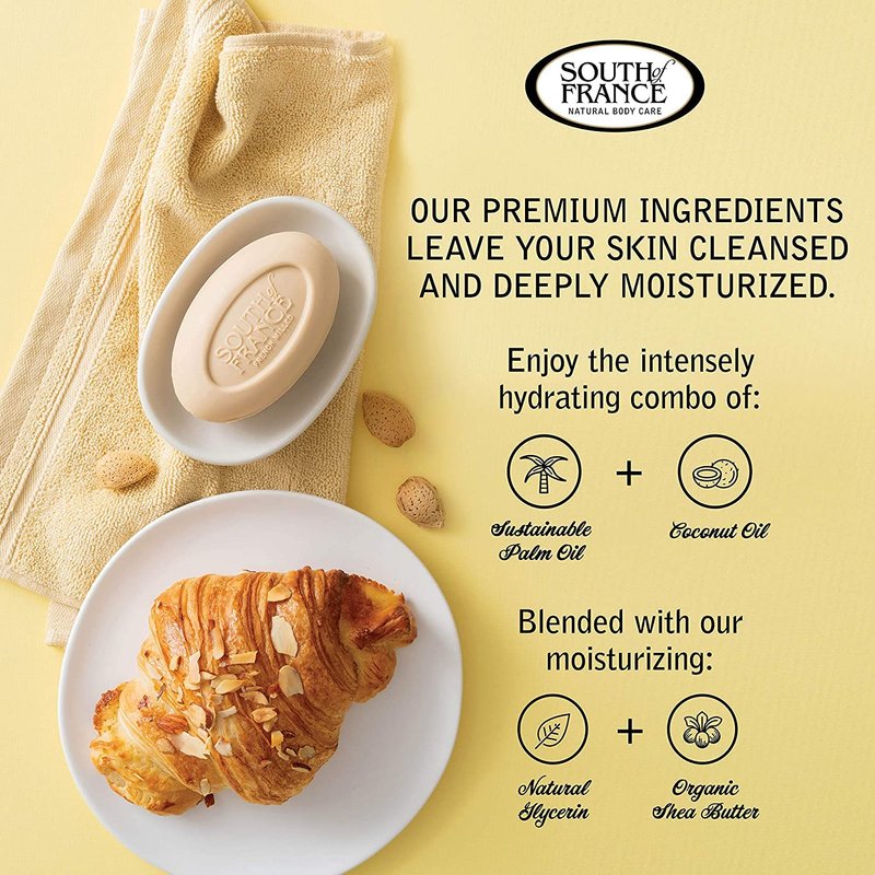 - FRAGRANCE TO LIVE BY: Our Sweet Almond Bar Soap is infused with sweet almond, nutmeg and warm vanilla that makes you imagine stepping inside a café for a vanilla latte and warm almond croissant on a cool autumn morning.