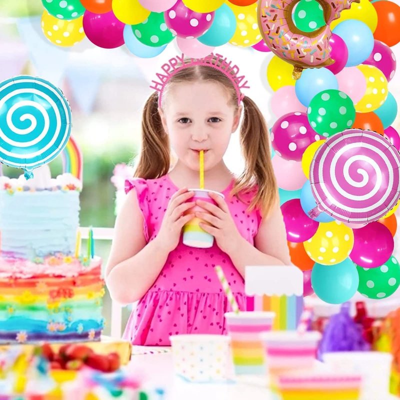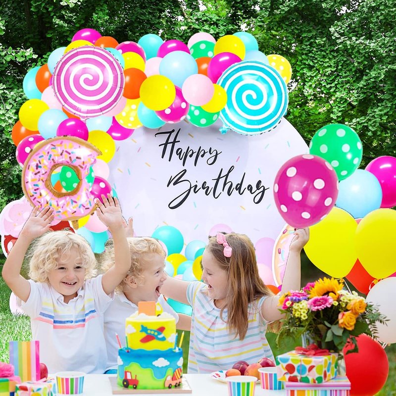 - Sweet Donuts Candyland Balloons Kit: Our pink yellow blue green balloons arch kit great for any occasion like girls boys candy baby shower, candyland donuts birthday party, windmill lollipop themed party, graduation, baby half birthday cake party, It's also great for Christmas candy garland, New Year Eve festival decor, sweet cute donut candy shop party, summer holiday party, growing up surprise candyland party, farewell party etc, which will bring you sweetness and surprise!