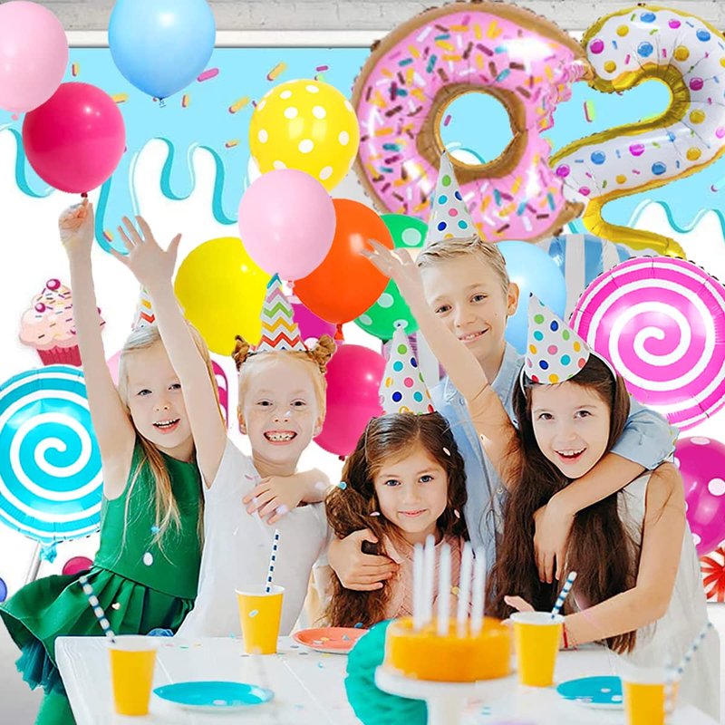 - Premium Quality: Our sweet candy Christmas party balloons are made of matte latex, thick to use; Lollipop windmill donut and candy balloons are made of aluminum film material, can be reused.