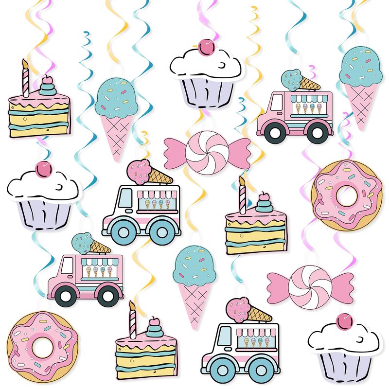 Sweet Comic Ice Cream Donut Hanging Swirl Party Decor, Pastel Cartoon 2D Comic Donut/Candy Party Ceiling Streamers for Girl Ice Cream Theme Birthday Party Kids Candy Wedding Baby Shower Party Supplies