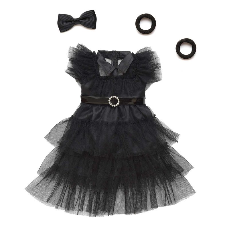 - Sparkling & Delicate, Sparkling Doll Outfit With The Lace Shoulder, Black Delicate Collar, Rhinestone Belt On The Waist And Black Tiered Dress Hem, Black Bow And 2 Hair Loops Fit Also Doll And Kids