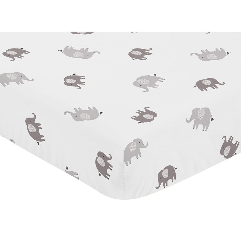 - This brushed microfiber crib sheet features an exclusive design of grey and white modern boho bohemian jungle safari silver gray animal elephants print.