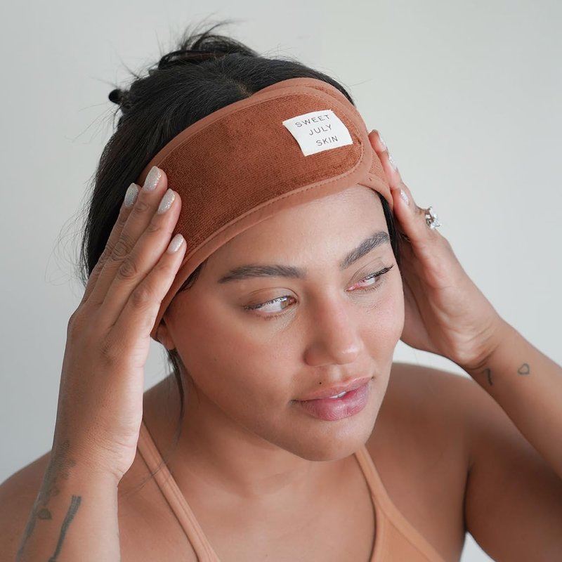 SWEET JULY SKIN Terry Headband - 100% Cotton, Reusable, Soft, Adjustable Head Wrap for Face Washing, Facial, Face Mask, Skincare (Pack of 1)