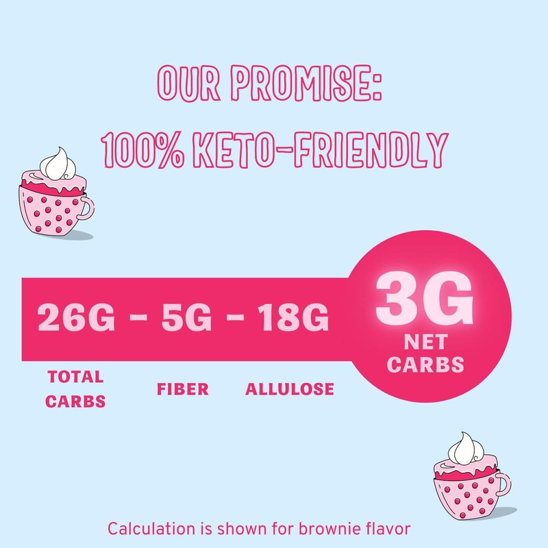 - KETO BAKING AND DESSERTS – Simpler, smaller, and lower calorie than our original Keto Mug Cakes – our new Just Add Water Keto Mug Cake has only 4g net carbs with no artificial sweeteners, gluten, or dairy. Perfect for keto baking or keto dessert on the go