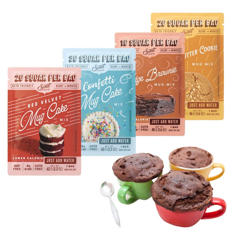 SWEET LOGIC Just Add Water Keto Mug Cake Mix | 3-4g Net Carbs, One Minute Easy Keto Baking | Refined Sugar Free Gluten Free Keto Baking Dessert Naturally Sweetened | 4 Pack Variety