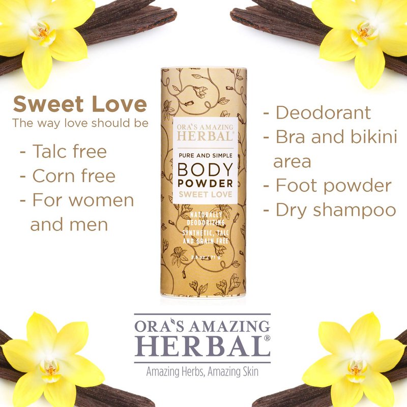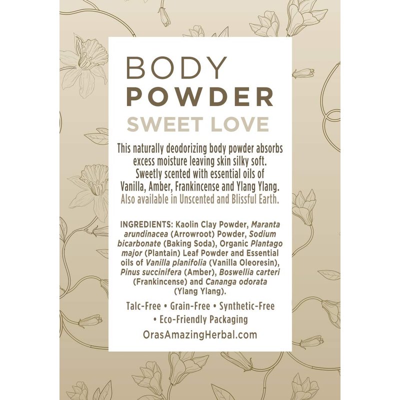 Sweet Love Body Powder, 3 pack, Ora's Amazing Herbal, Scented Talc Free Dusting Powder with Vanilla & Frankincense