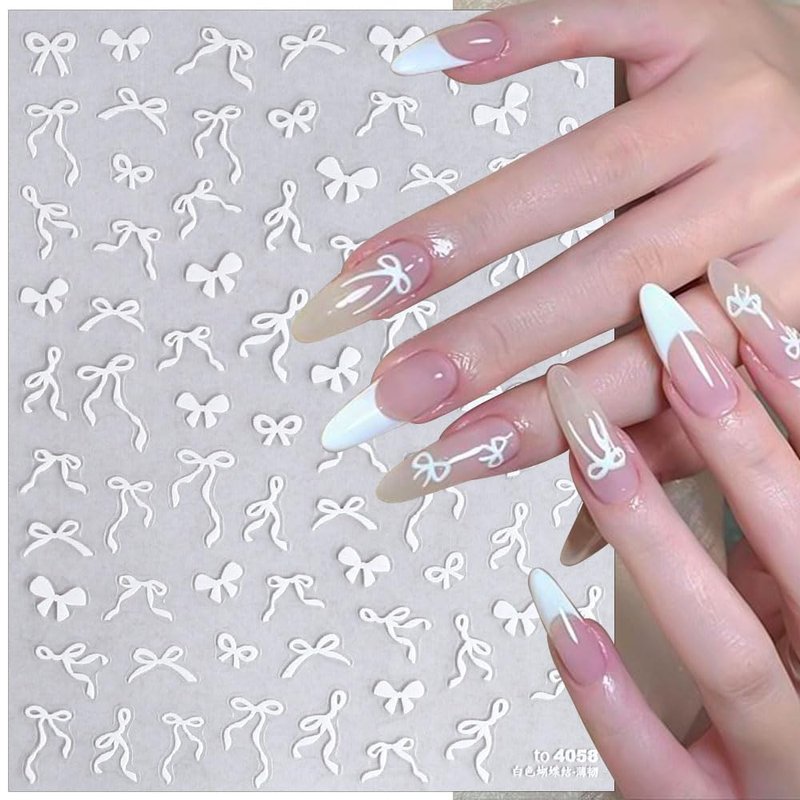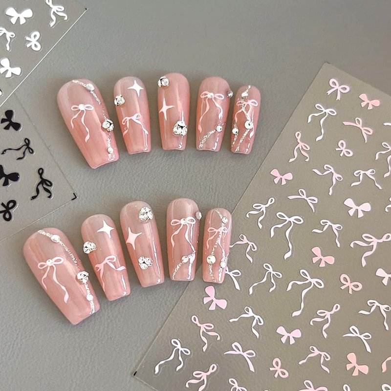 - 【Cute Bows Nail Decals For Nail Art】The sweet bowknot ribbon nail sticker are self-adhesive and easy to use, just peel the bow pattern off the nail sticker and stick it on your nails, with this self-adhesive bow stickers, you can create beautiful nail look easily.