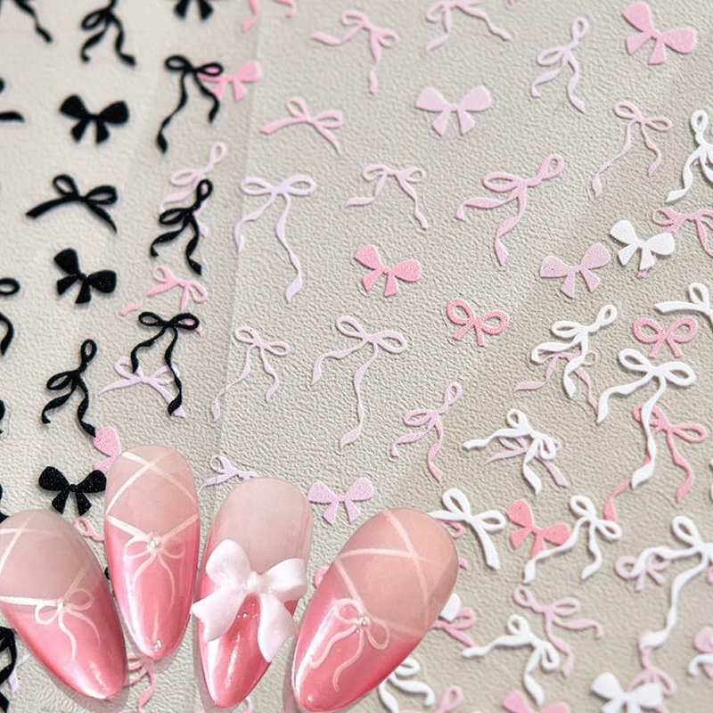 - 【Bow Nail Stickers for Nail Art】You will get 3 sheets of bow nail art stickers in three colors: pink,white,black. Different colored bow nail decals can be paired with different nail styles, providing more choices for your nail design.
