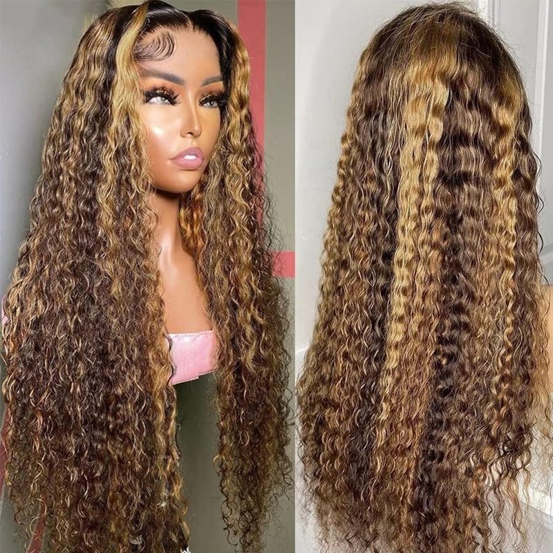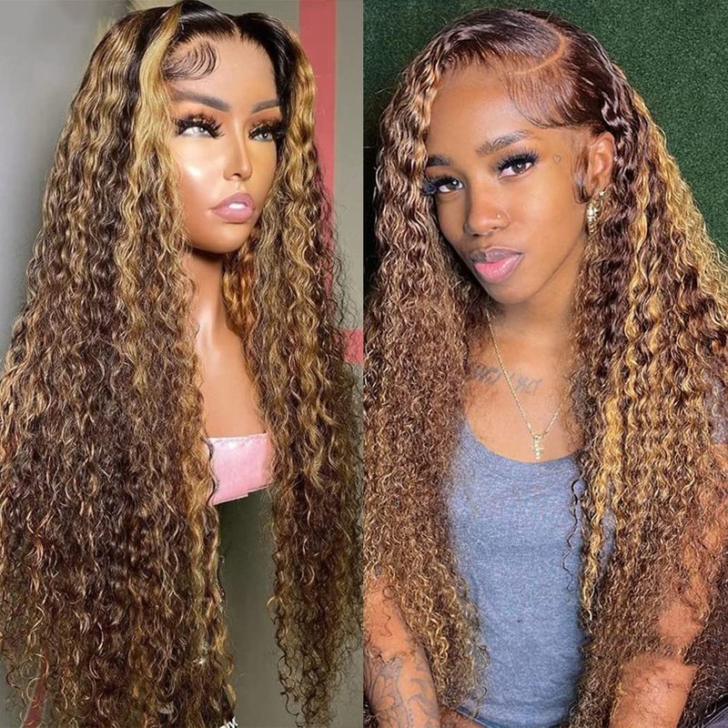 SWEETGIRL Highlight Ombre Water Wave Lace Front Wigs Human Hair Pre Plucked 13x4 Lace Frontal Wigs Curly Human Hair Wig for Women 180 Density 20 Inch