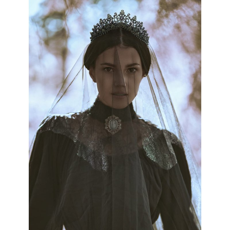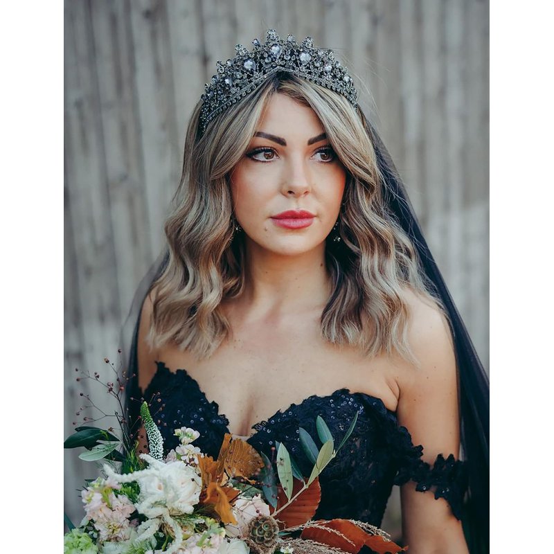 - ♕ Encrusted with black crystals of various sizes, this women tiara features in gothic chic style with vintage and distinct charm. Best costume tiara for Halloween.