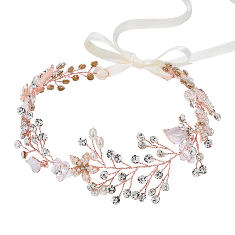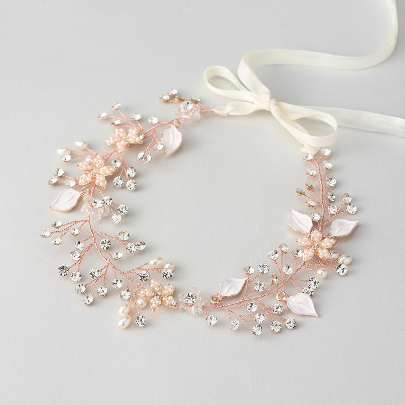 - ➤ 【Features】: A mix of clear crystals and acrylic pearls are set throughout with 4 pearl-encrusted flowers and enamel leaves. Set on flexible metal, the wedding hair accessories can be gently shaped to suit your hair perfectly.