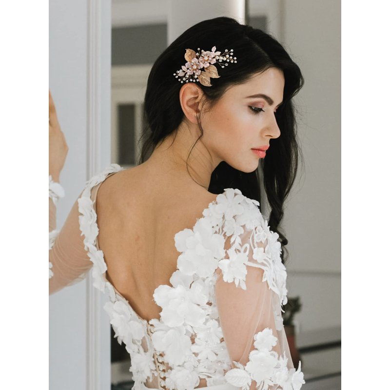 - ❀Features: This delicate wedding hair comb features a romantic design, its flowerlike design makes it a perfect complement to many wedding dresses.