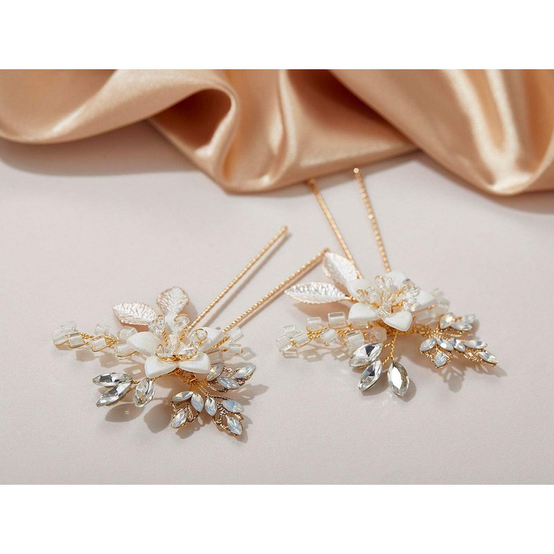 - Set of 2 bridal hair pins inspired by delicate white flowers. These pins can be worn individually.