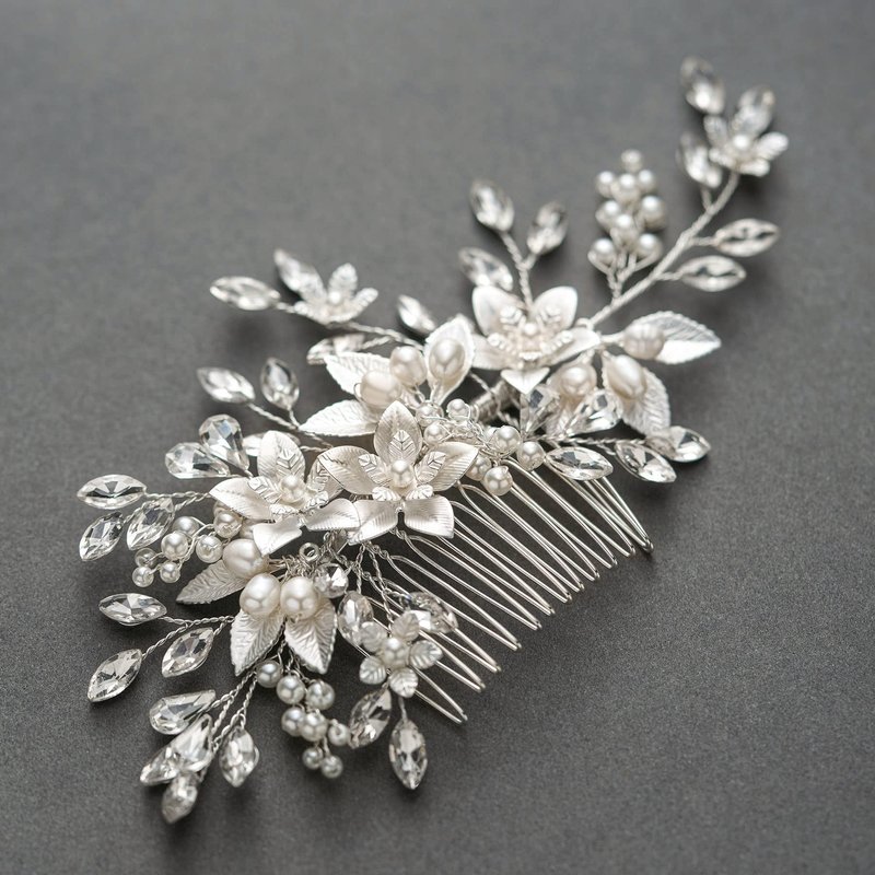 - ❀Material: Delicate wedding hair comb made of pearls, crystals, silver plated leaves, soft alloy wire,101% handmade and well crafted.