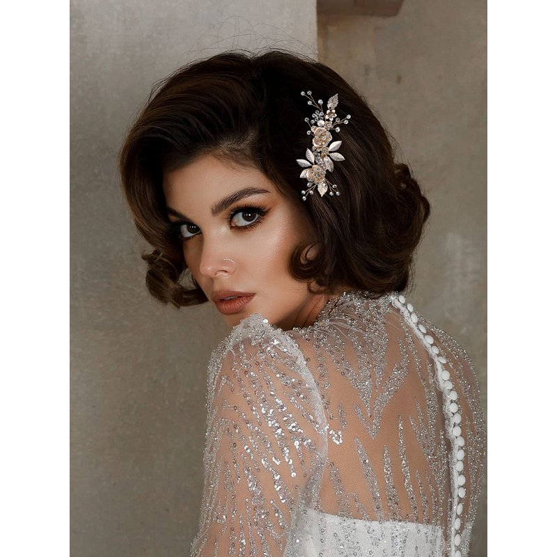 - ❀Features: This delicate wedding hair accessory features a romantic design, its flowerlike design makes it a perfect complement to many wedding dresses.