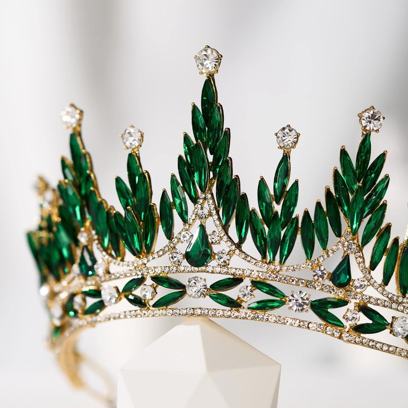 SWEETV Tiaras and Crowns for Women, Wedding Tiara for Bride, Rhinestone Queen Crown, Crystal Costume Hair Accessories for Birthday Prom Quinceanera Celebration,Green