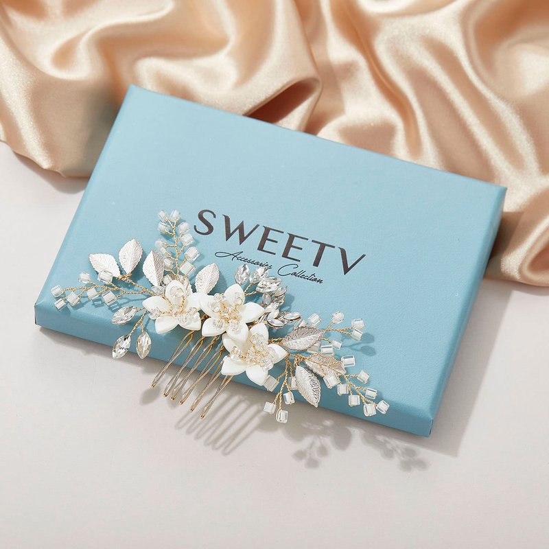 - ❀Features: This delicate wedding hair comb features a romantic design, its flowerlike design makes it a perfect complement to many wedding dresses.