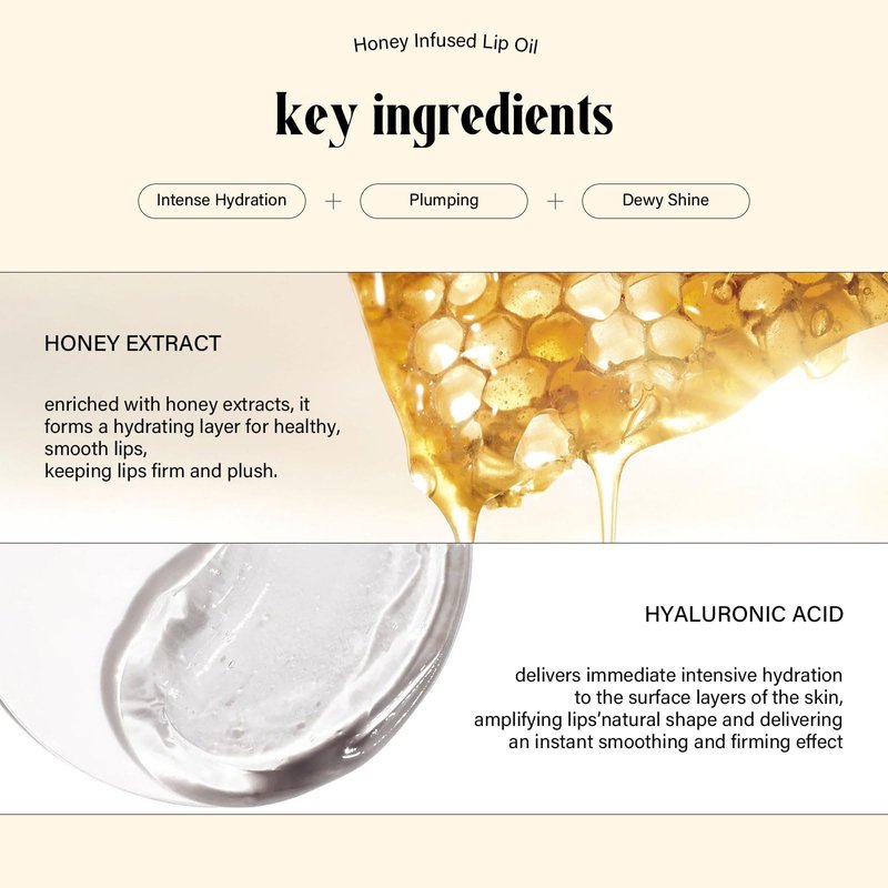 - Easy to Use: Use watermelon moisturizing lip oil during the day by applying directly to bare lips or under/over your favorite lip product for extra dimension, hydration, and shine. Apply honey lip oil thickly to give your lips an SPA at night to make lips look more attractive the next day.