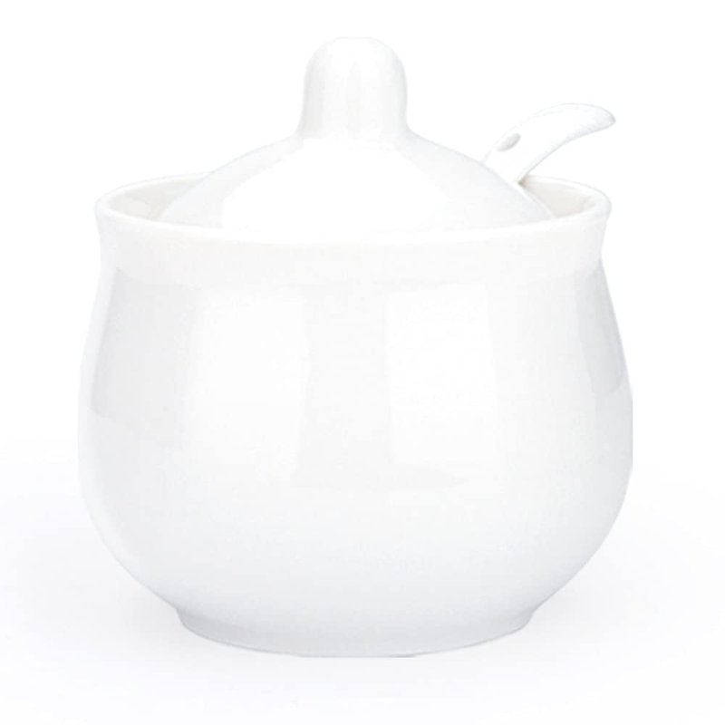 - 【DESIGN CONCEPT】Classic white style and simple design. The small sugar bowl fits most basic kitchen accessories and decor nicely. It is very suitable for restaurants, families, coffee shops and other occasions. Swetwiny sugar canister is a great choice for gifts.