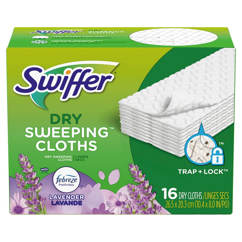 Swiffer Sweeper Dry Sweeping Cloths, Mop and Broom Floor Cleaner Refills, Febreze Lavender Vanilla and Comfort Scent, 16 Count