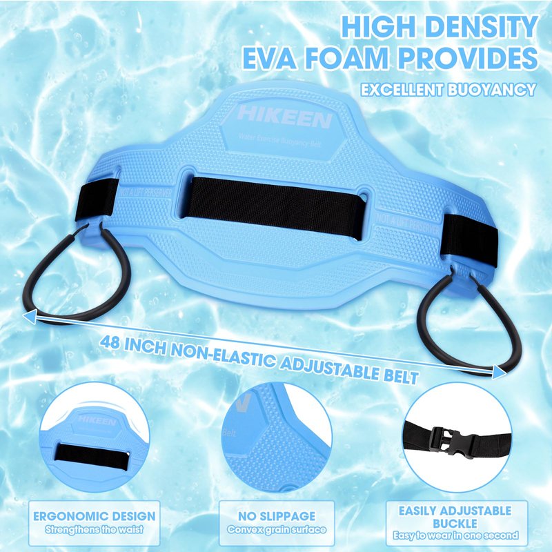 - [Best Swim Floating Belt]: US Patent Pending - After market research, Hikeen Active Belt has been innovated to eliminate the problem of upward sliding while swimming, including 2 new fixing straps to avoid the discomfort of the belt sliding upward and the pressure on the rib cage, achieving a non-binding waist.