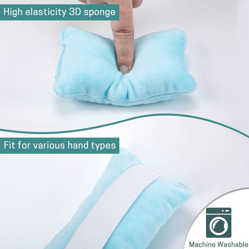 - The hand grab pads are available in two shell materials. One is super soft cloth, which is soft and light, comfortable and skin-friendly. It would be great to use in cooler weather. Another is nylon cotton, which is sweat-absorbent and wear-resistant, and is more suitable for use in hot weather. Our palm grip is filled with 3D sponge for great resilience.