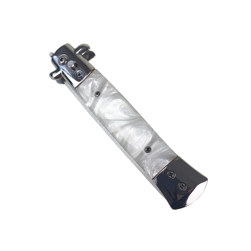 Switchblade Comb Pocket Knife Hair Brush Automatic Push Button Folding Barber (White Marble)