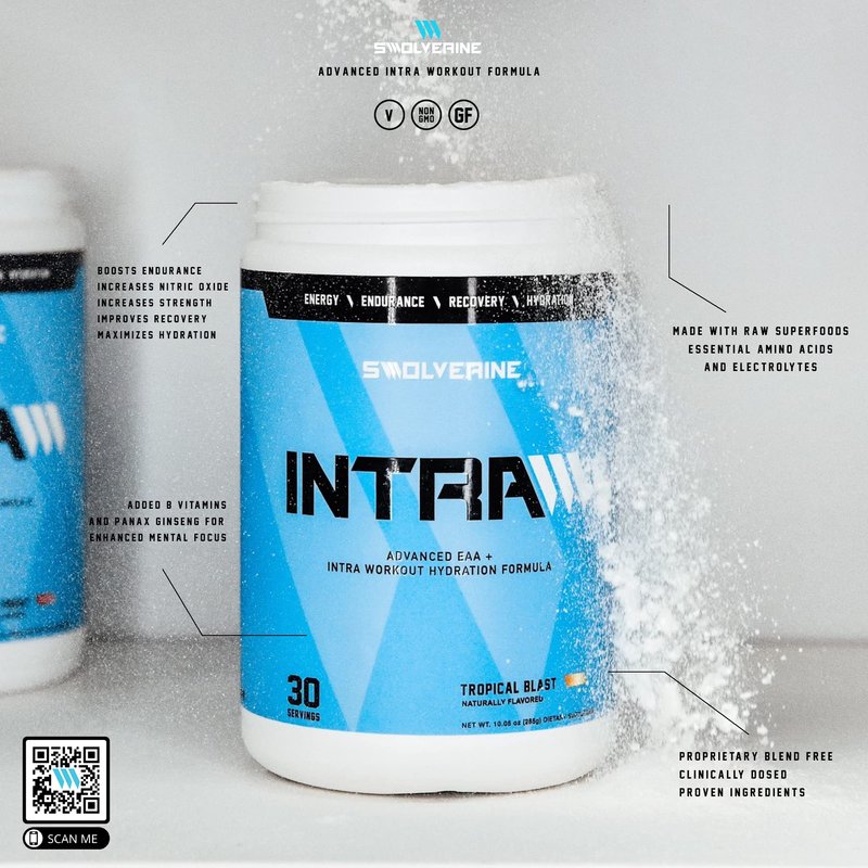- IMPROVED ATHLETIC PERFORMANCE – Unlike any other product, Swolverine’s INTRA combines high-quality sports performance nutrition and potent antioxidant-rich superfoods, in one truly effective intra-workout formula. Studies have shown that ingredients such as tart cherry extract, spirulina, essential amino acids, pomegranate, and Panax ginseng all significantly improve performance outcomes such as endurance, strength, oxygen uptake, and power, for optimal training capacity.