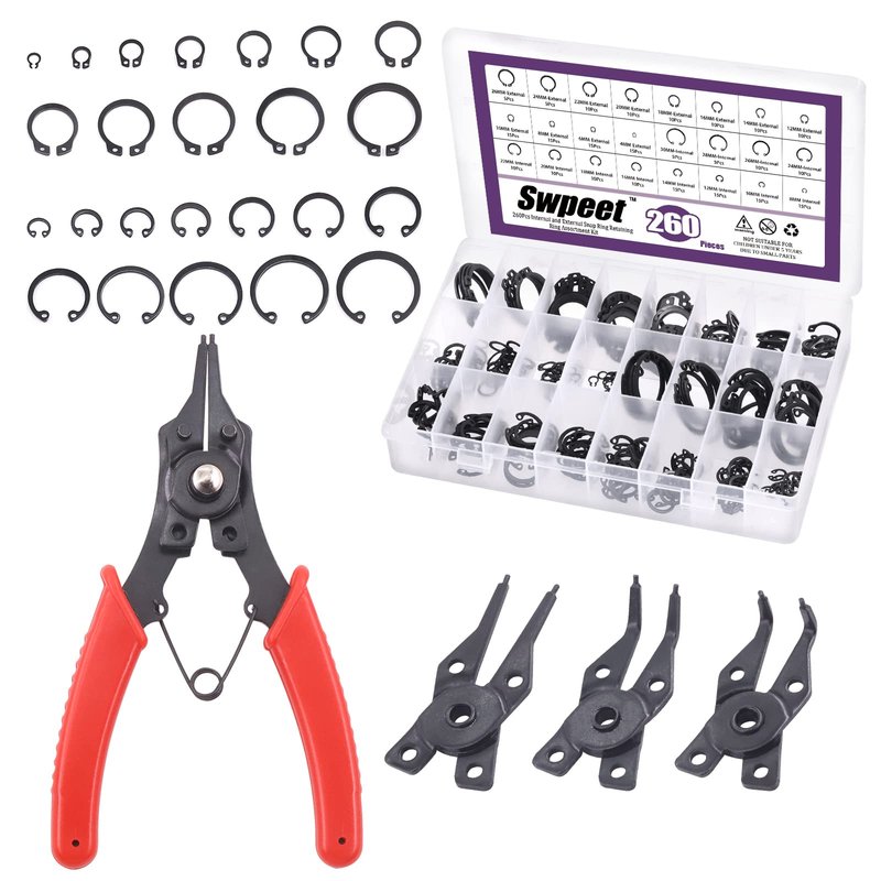 π― Swpeet 262Pcs 4 in 1 Snap Ring Pliers with 6 Sizes 4mm to 30mm Alloy Steel External Retaining Rings Internal Circlip Snap Retaining Clip Ring