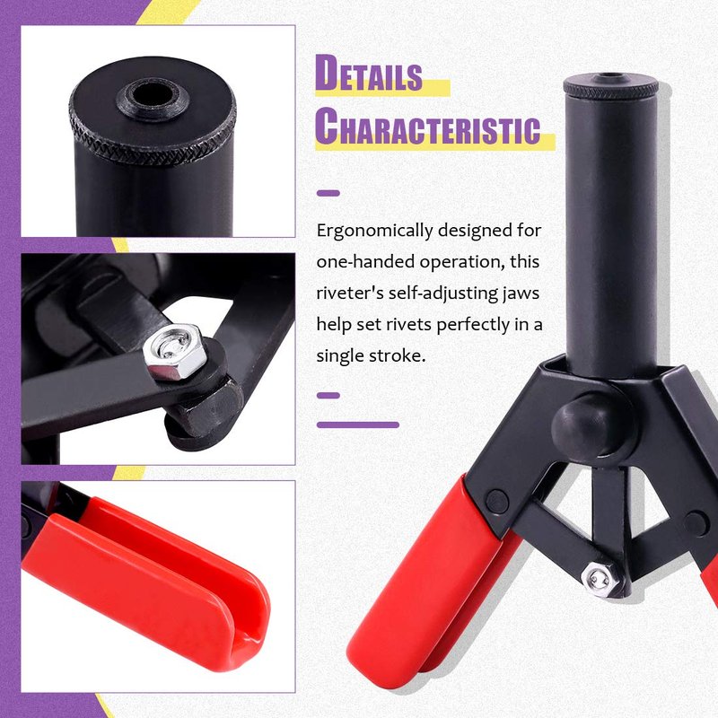 - ☛ 2, 【 Ergonomically Designed 】----- Lightweight, designed for one-hand operation with one-stroke without re-gripping, Self-adjusting jaws help set rivets perfectly in a single stroke without re-gripping or prematurely breaking the stem.