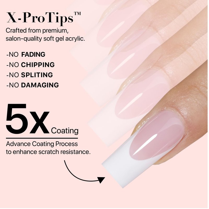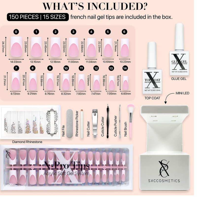 SXC Cosmetics French Tip Press On Nails Pink Series, Medium Square X-Pro Tips Starter Kit