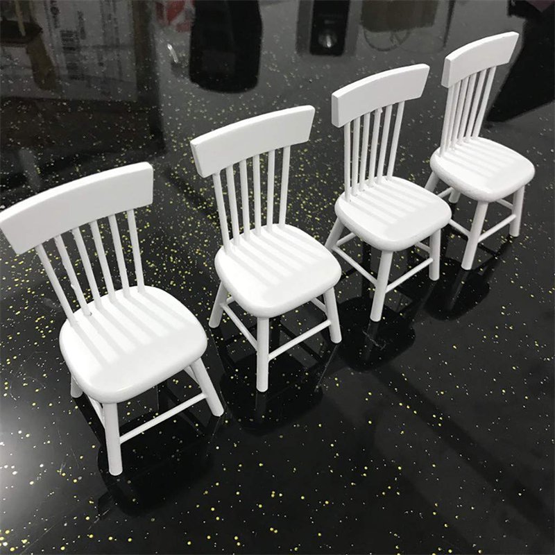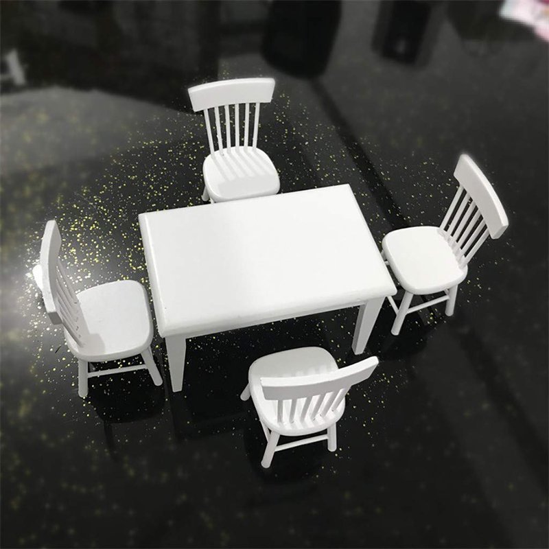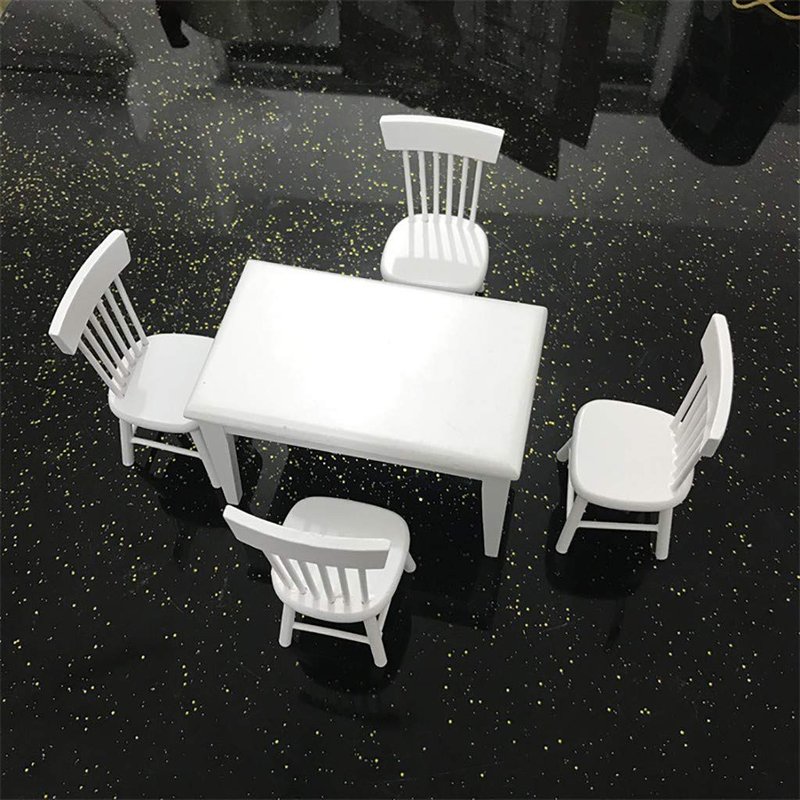 SXFSE Dollhouse Decoration Accessories, 1:12 Dollhouse Miniature Furniture Wooden White Dining Table Chair Model Set