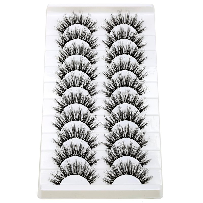 SYlashes False Eyelashes 15mm Faux Mink Lashes Fluffy Thick Crossed Soft Wispy Luxury Volume Fake Lashes 10 Pairs Pack