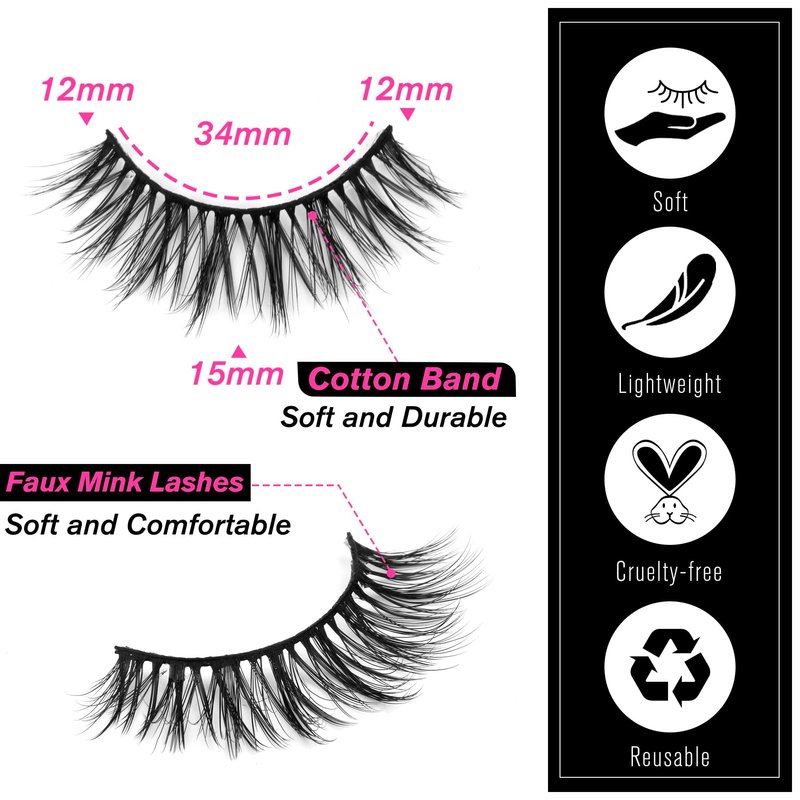 - Beginner Friendly - Strip eyelashes are easy to apply and remove. Even lash beginners can get charming look by themself. The lashes is also reusable with proper care.