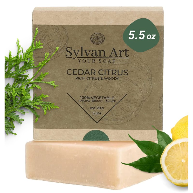 Sylvan Art Cedar Citrus Natural Scent Handmade Organic, Essential Oils Men's Soap Bar Beard Body, Face Wash Bath Nourishing Bar Soap - 5.5 Ounce