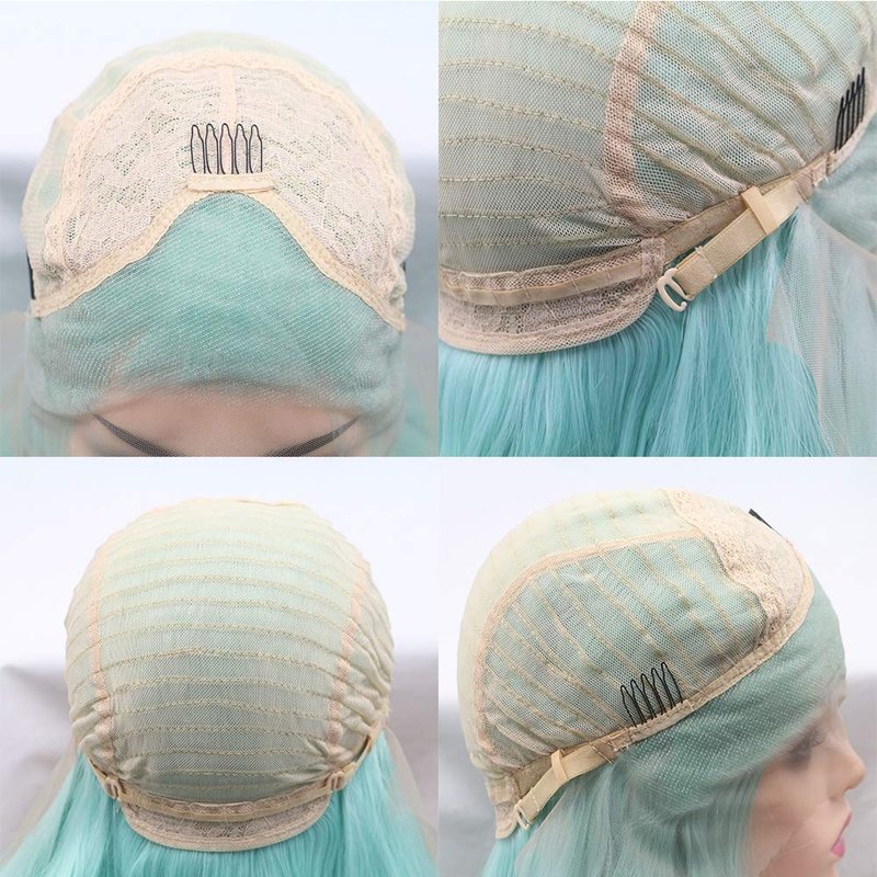 sylvia 24" Light Blue Natural Wave Synthetic Lace Front Wigs Heat Resistant Fiber Hair Replacement Wig