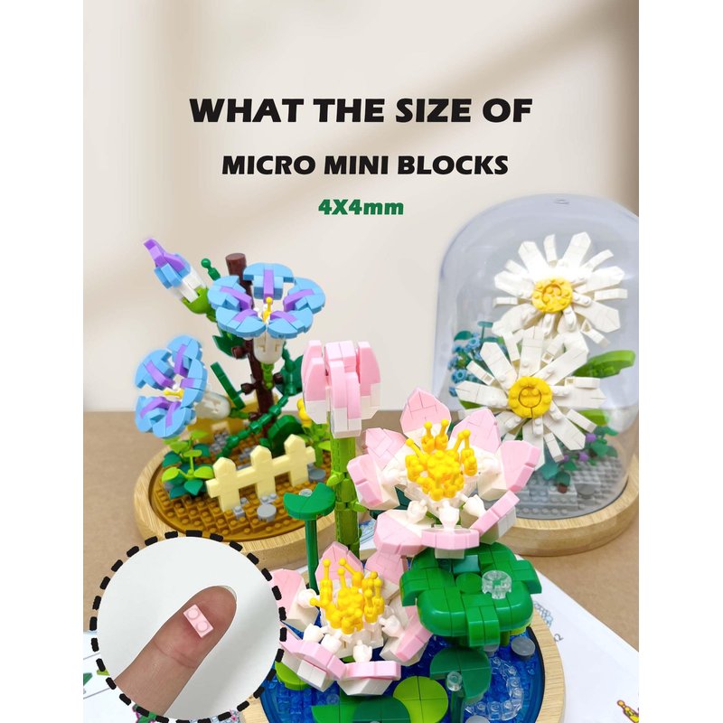 - Mini Building Blocks - This flower building block set contains ultra-small bricks, which are smaller than standard bricks, but are complete in detail, rich in structure, and more challenging! Build a beautiful floral display model with these mini bricks and never wither