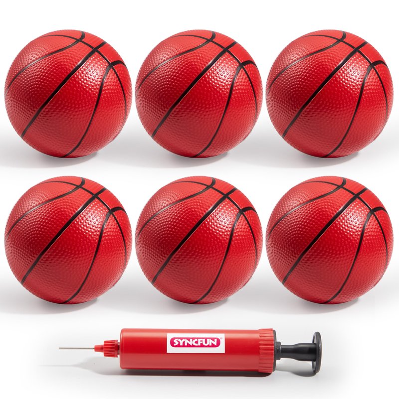 SYNCFUN 5" Mini Basketball Set, 6 PCS Small Basketball with Pump for Mini Basketball Hoop, Rubber Toy Ball for Pool, Indoor and Outdoor Games, Sports Toys for Toddlers and Teenagers