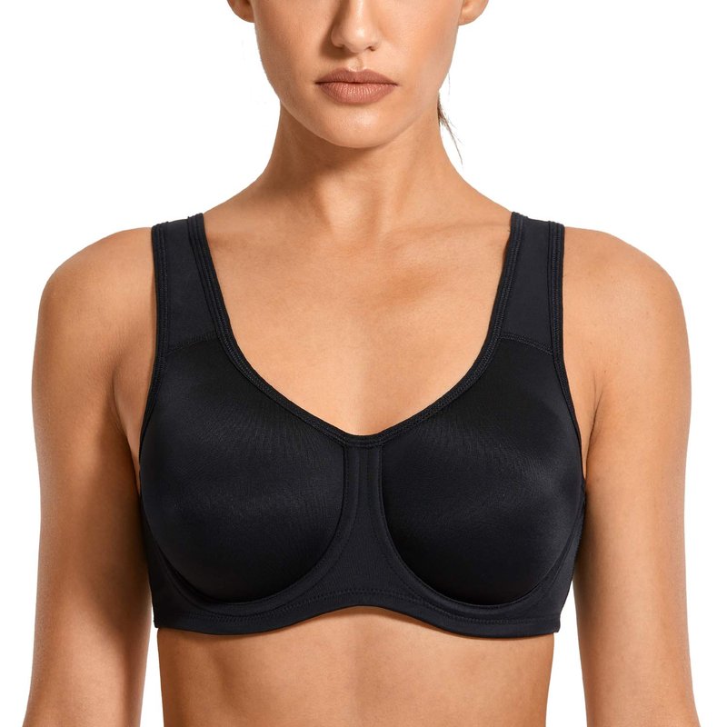 SYROKAN Women's Max Control Underwire Sports Bra High Impact Plus Size with Adjustable Straps Black 34D