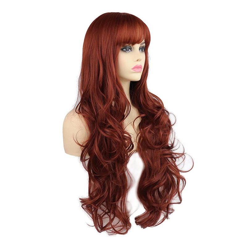 SYXLCYGG Long Auburn Wigs 28" Wavy Synthetic Daily Wigs Halloween Costumes Party Curly Hair Wig With Bangs Soft&Not Tangled for White Womens Natural Wigs Girls Ladies Real(free wig cap)