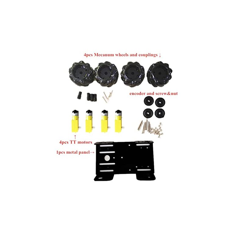 - The robot brings four 60mm mecanum omnidirectional wheels, the robot can move forward and backward, turn left, turn right, etc .;