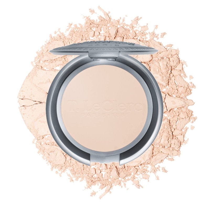 - Applied all over the face, it creates a mattifying veil. Light and soft, the T.Leclerc compact powder is the ideal asset for a perfect complexion all day long. Its mineral-based formula is gentle on the skin, making it perfect for all skin types. The compact also includes a mirror, so you can apply your powder with precision and without needing additional tools. Rice-based compact powder available in 12 shades for daily use.
