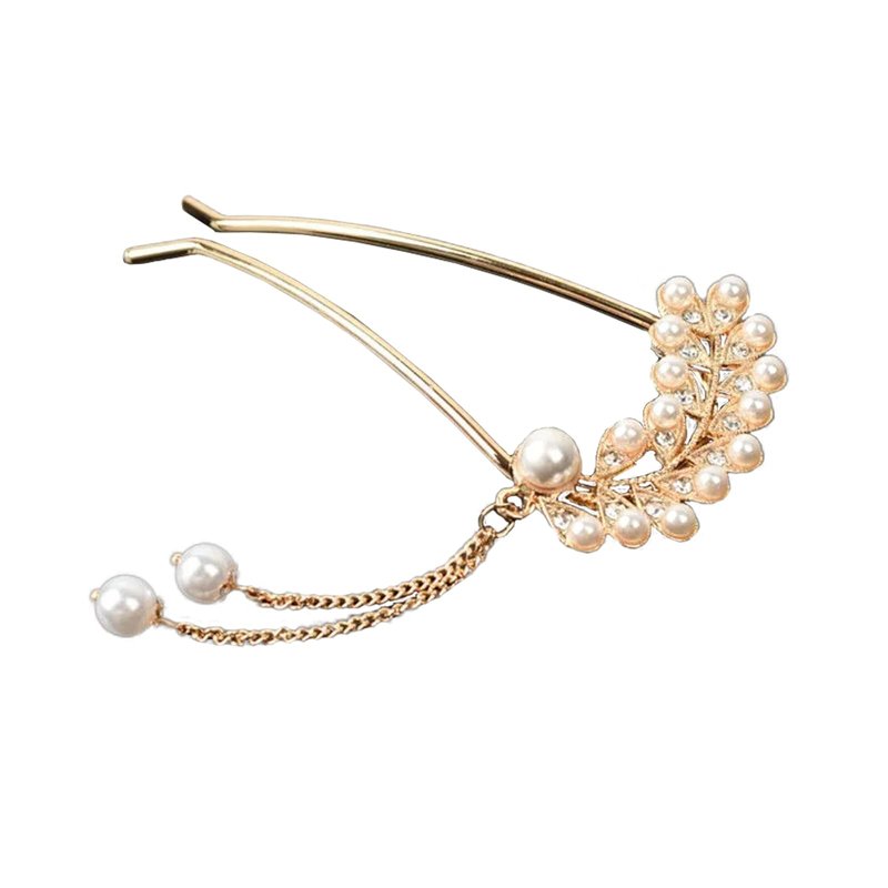 - About: shiny feather hair accessories. Material: Alloy. Inlaid with rhinestones. Color: gold. Our hair clips are super beautiful, beautiful and elegant. Wearing it will make people shine and get a lot of compliments.